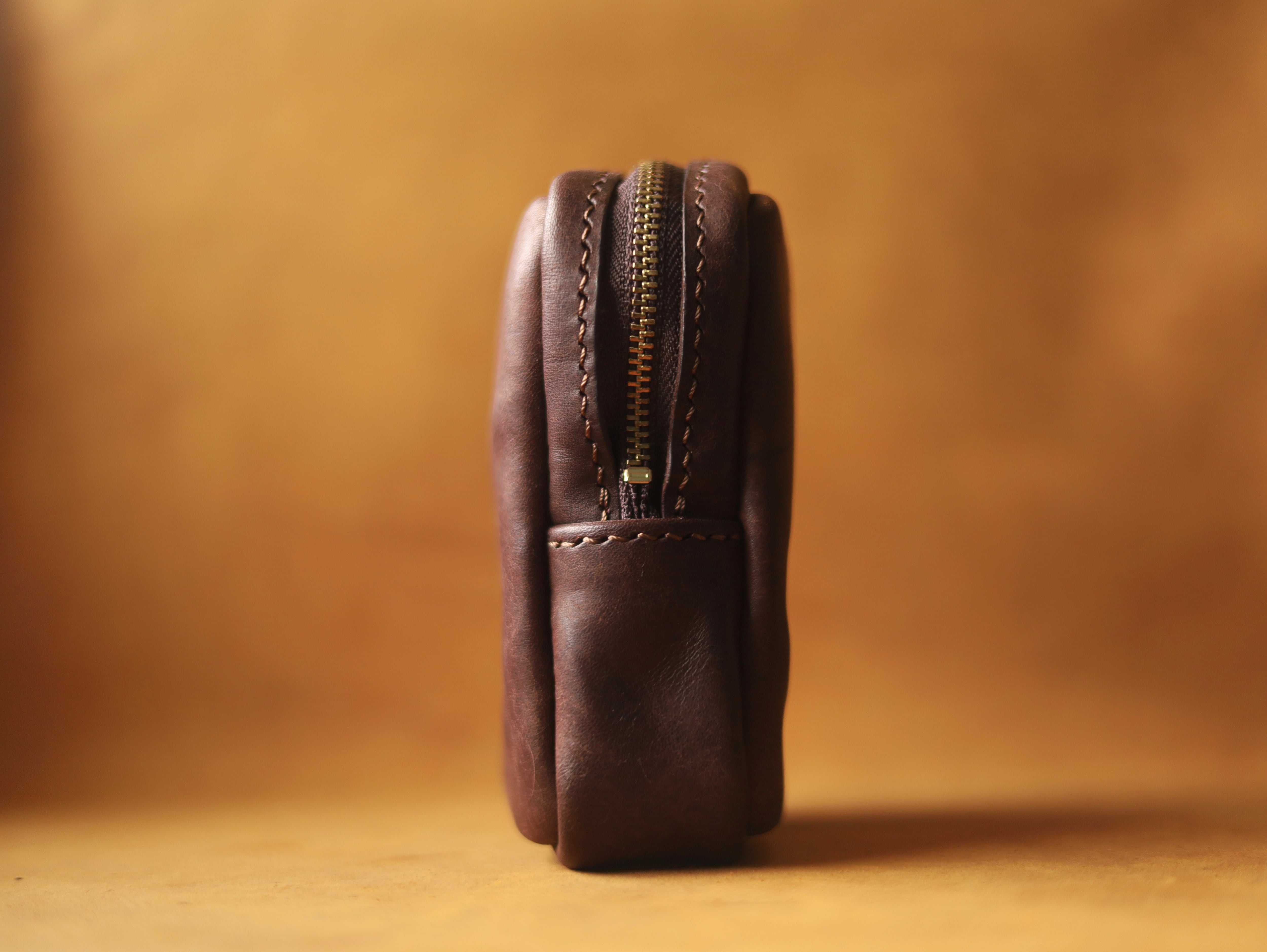 タンニンなめしの上質なイタリアンレザーを使用。決まった使い方がないからこそ、雑多なものを入れておけるスクエア型ポーチ。ガバッと大きな口で探しやすく取り出しやすい設計。使い込むほどに手に馴染み、艶々とした表情に変わる経年変化もお楽しみください。
