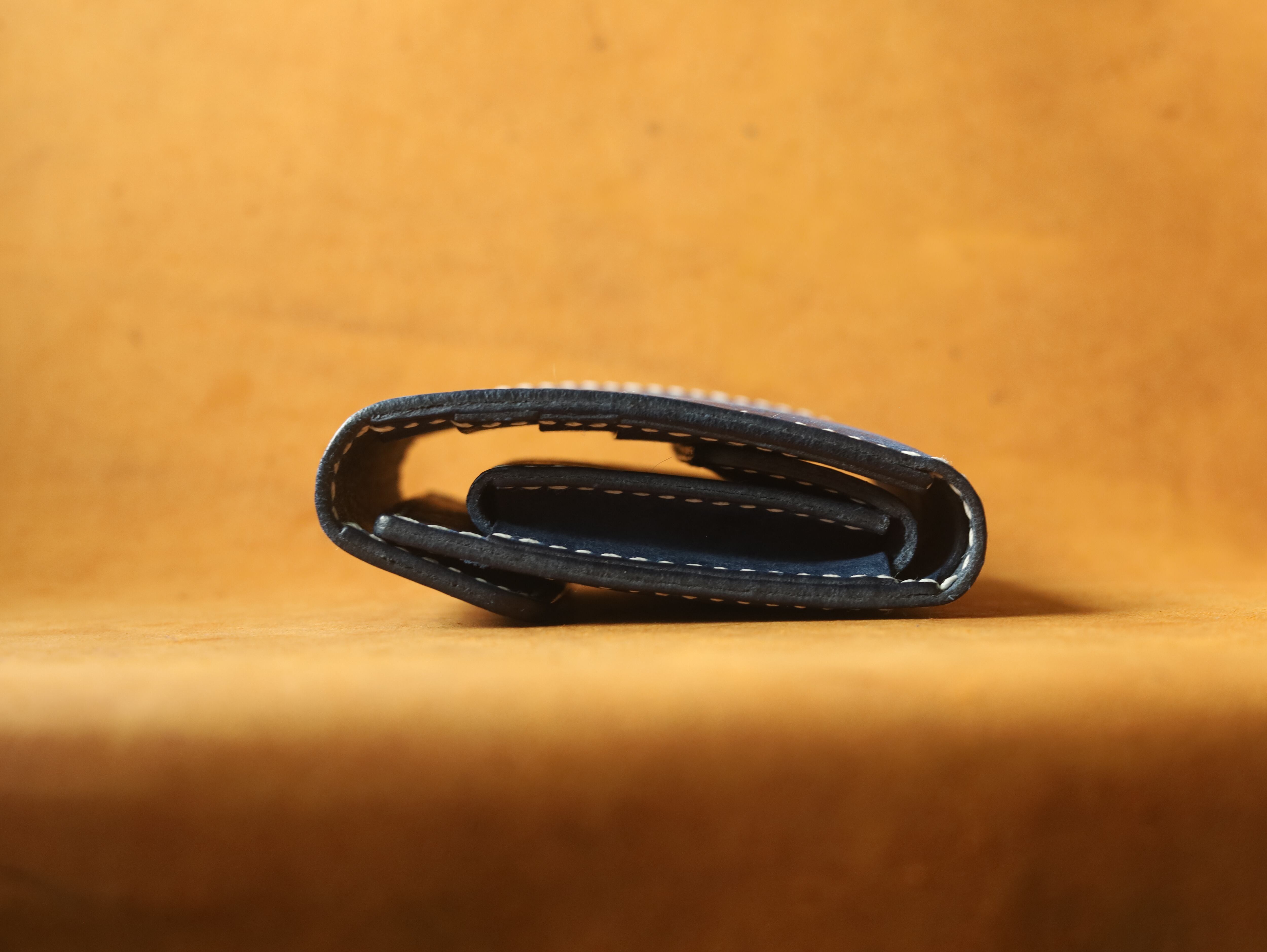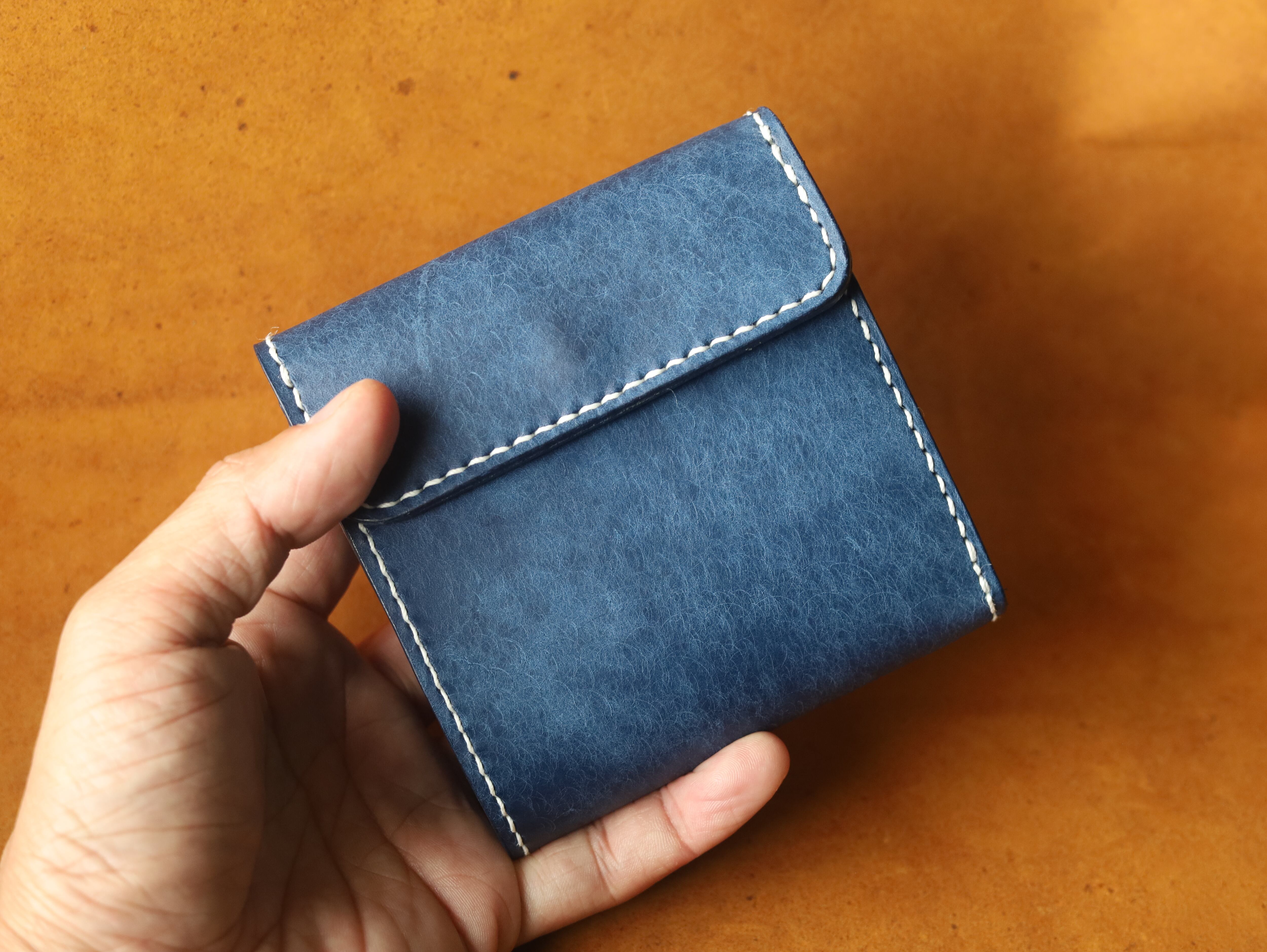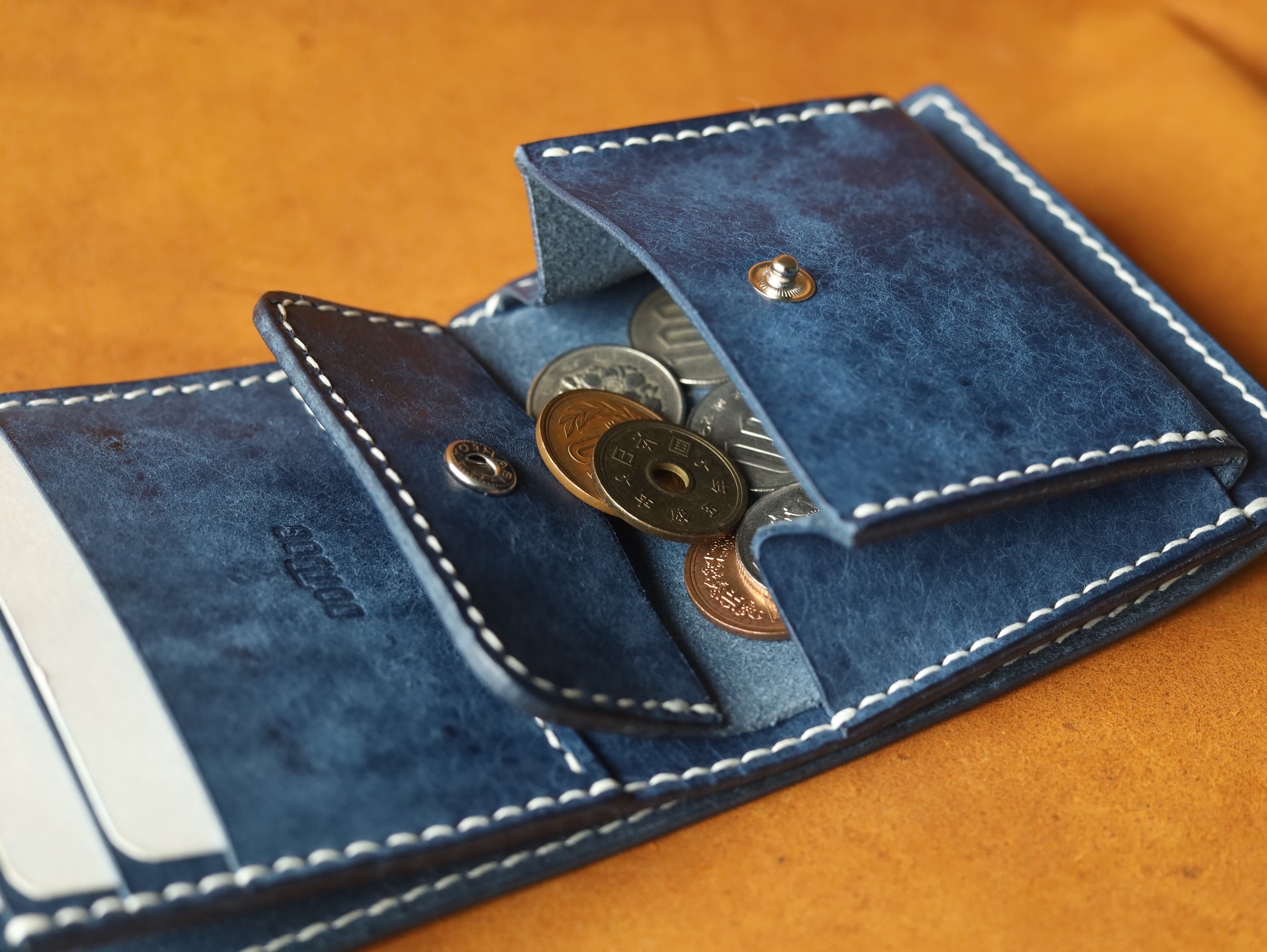 タンニンなめしの上質なイタリアンレザーを使用。小銭入れの裏に隠しスペースを作るなど、収納力のある縦型の二つ折り財布。お札の出し入れがしやすい設計で、スムーズな使い心地。使い込むほどに手に馴染み、艶々とした表情に変わる経年変化をお楽しみください。 革やステッチのカラーや刻印の位置など、 どうぞお気軽にお声掛けください。